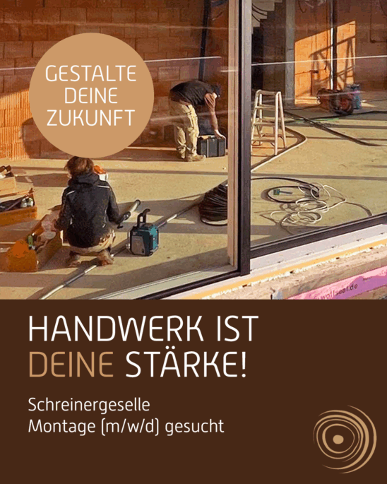 Mit dir als Schreinergeselle möchten wir unser Montage-Team verstärken – mit deinem Können, deiner Zuverlässigkeit und deiner Freude am Arbeiten mit Holz und anderen hochwertigen Materialien.